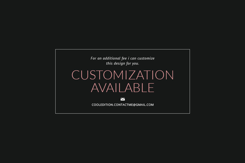 For an additional fee i can customize this design for you. For details write me to: cooledition.contactme@gmail.com